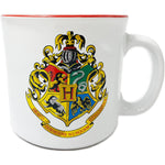 This Harry Potter Hogwarts Crest Camper Mug 20oz is perfect for any Harry Potter fan. Featuring the Hogwarts school crest four houses and "Draco Dormiens Nunquam Titillandus". White colored camper style mug with red on the inside. Image is reversed on back.