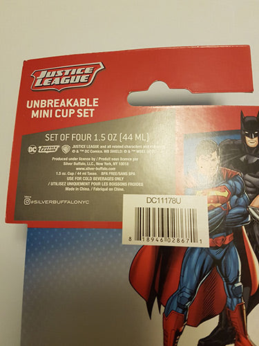 DC Justice League Unbreakable Mini Collectible Cups 1.5 oz