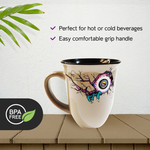 Stay energized with this 16 oz wide-rim ceramic mug featuring the classic MTV logo. The monster-eye graphic adds a touch of personality to your drink breaks - perfect for a true MTV fan. Enjoy your hot beverages in style with this eye-catching mug.