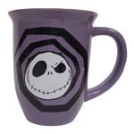 Enjoy your favorite hot or cold beverage with this 16 oz. Nightmare Before Christmas Jack Face Spiral Mug. The mug features a vibrant purple background and beloved character Jack Face on the front. The mug is made of quality ceramic, ensuring it won't rust or break easily. Enjoy your day with this mug!