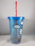 Sanrio Hello Kitty Balloons Tumbler 16 oz. Featuring Hello Kitty holding balloons with clouds and glittery graphics. May Include red or green straw, if preference please leave a note at checkout.