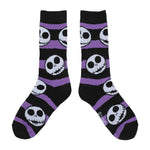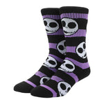 Inspired by Tim Burton's Nightmare Before Christmas, these black & purple athletic crew socks are perfect for fans. Featuring a bold all-over print of Jack Skellington and made with black light reactive material, these socks are a must-have for any Halloween or cosplay outfit.