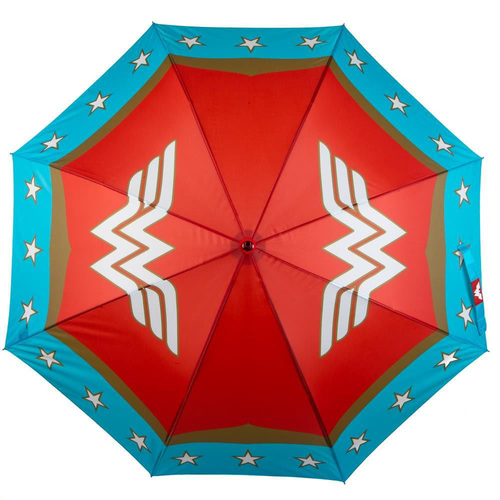 The DC Comics Wonder Woman Sword Handle Umbrella is perfect for any fan of the popular Amazonian heroine. The umbrella features a classic sword handle design, making it a bold and stylish accessory, along with a shoulder carrying strap for convenience. The lightweight, durable construction ensures that it can withstand wet weather conditions, perfect for everyday use.