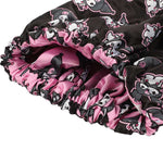 Sleep in ultimate kawaii comfort with our Sanrio Kuromi Character All-Over Print Reversible Sleep Bonnet—a cute and cozy essential designed for fans who want to protect their hair in style! Officially licensed by Sanrio and exclusively available through us, this OSFA bonnet features a fun and bold Kuromi all-over print outlined in pink on a black background, with a reversible soft pink interior for two stylish looks in one.