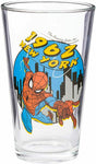 Marvel Spiderman 1962 New York Pint Glass 16 oz (473 ml). Featuring Spider and "The Amazing Spider-Man 1962 New York" text from the Marvel series.