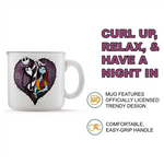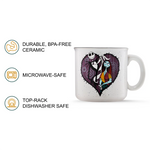 Nightmare Before Christmas Jack Skellington & Sally Mug 20 oz featuring Jack Skellington and Sally in a stitched heart from the Disney film.