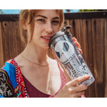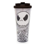 Nightmare Before Christmas Jack Skull Faces Travel Tumbler 24 oz. Double walled travel tumbler. For hot and cold beverages. BPA free. 24 oz (709 ml). Featuring Jack Skellington with skulls with faces and bones all over from Disney Tim Burton's The Nightmare Before Christmas.