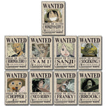 One Piece Straw Hat Crew Wanted -julistetarrat, joissa on olkihattujen merirosvojen etsintäkuulutettuja julisteita. 9 tarran sarja. Jokainen tarra on kooltaan 3 x 2 tuumaa.SKU: ST55684