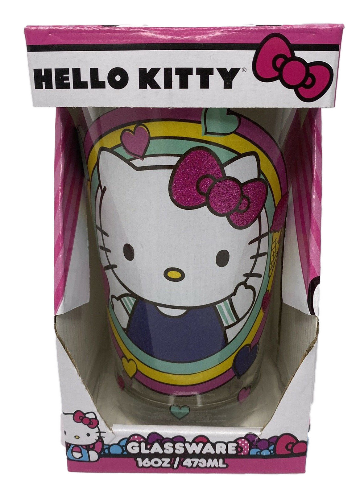 Verre à pinte Hello Kitty Rainbow Hearts 16 oz. Verrerie 16 oz (473 ml). Avec Hello Kitty de la série Sanrio.