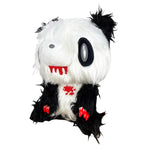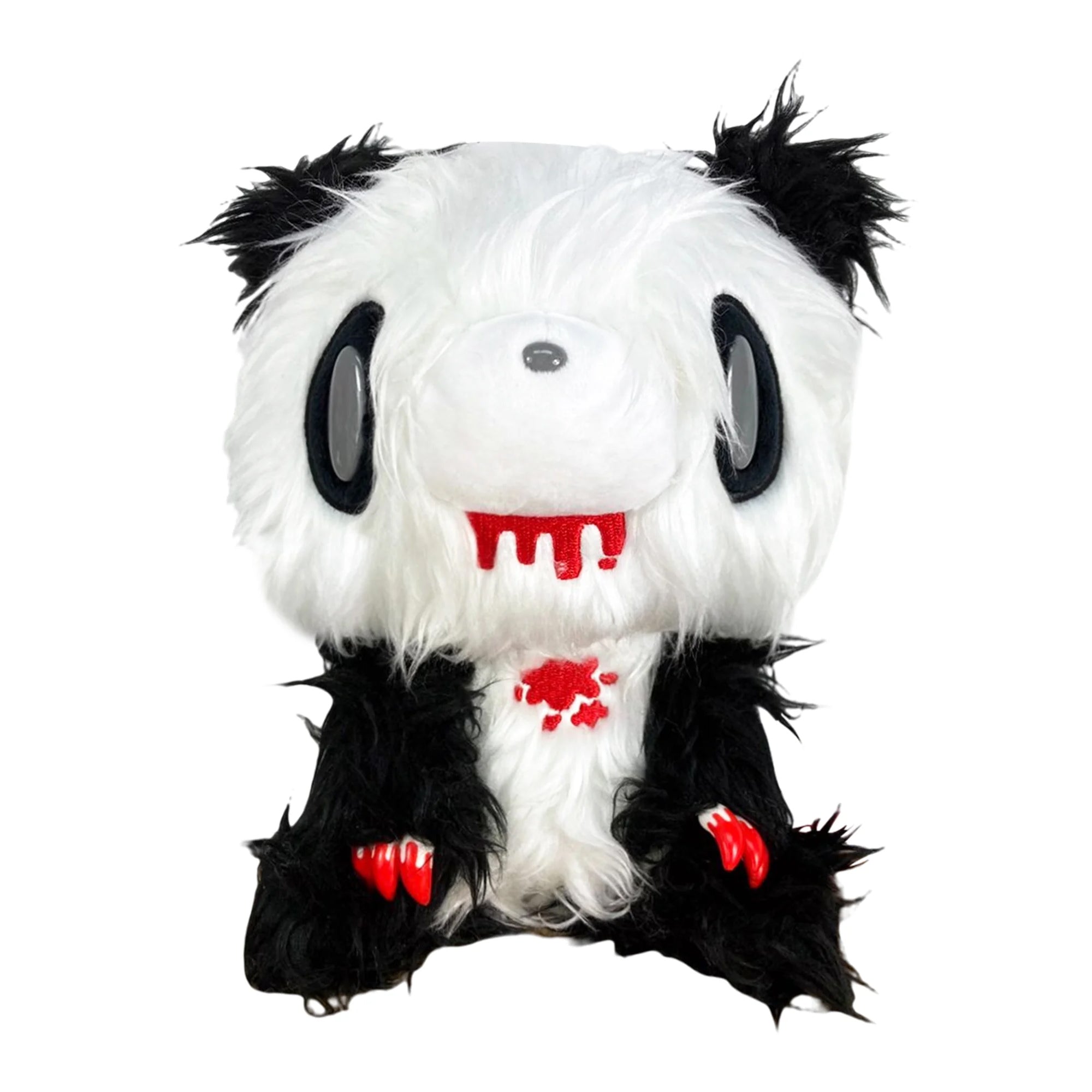Gloomy Bear Panda Black White Fur 8" Sitting Plush Doll featuring black and white panda Gloomy Bear with long fur from the Mori Chack brand. Includes black hanging strap and is Officially Licensed by Mori Chack.