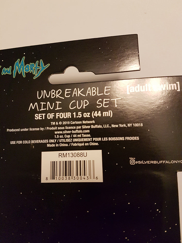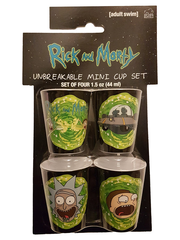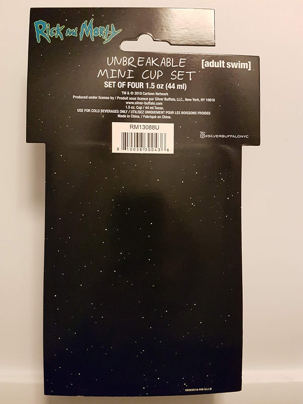 Rick & Morty Unbreakable Mini Collectible Cups 1.5 oz are made of shatterproof, plastic material and are 100% food safe. Each cup holds up to 1.5 ounces of liquid. This innovative collection of Rick & Morty-themed cups is perfectly suited to both casual and formal gatherings. Crafted from long-lasting shatterproof plastic material, they are 100% food-safe, and durable enough to last multiple uses. Perfect for hosting parties or enjoying your favorite beverage on the go.SKU: MG0043