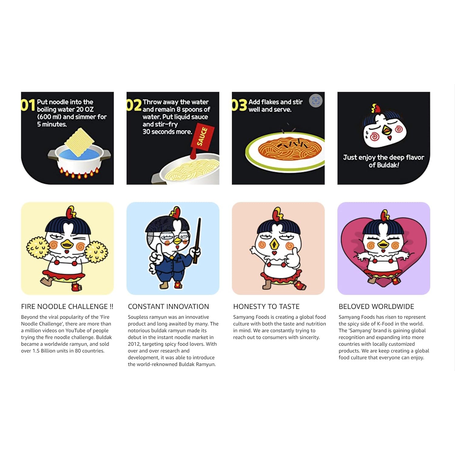 Samyang Stir Fried Flavor Spicy Hot Ramen Noodles. This is the ramen used for Youtube Mukbangs & Challenges. Jjampong is a Korean Chinese Style seafood soup seasoned with chili and vegetables and is very spicy. Each noodle package is 4.93 oz.