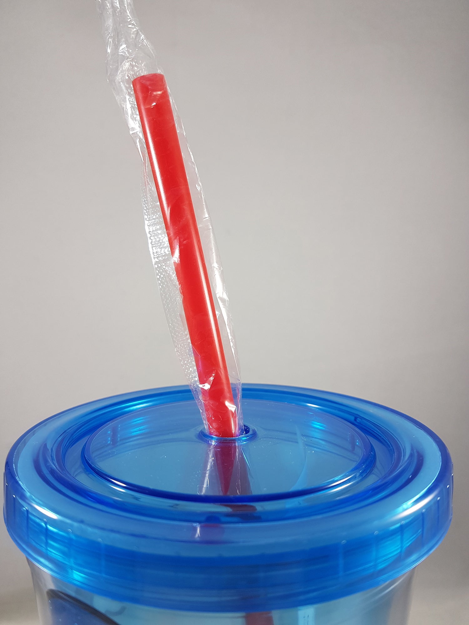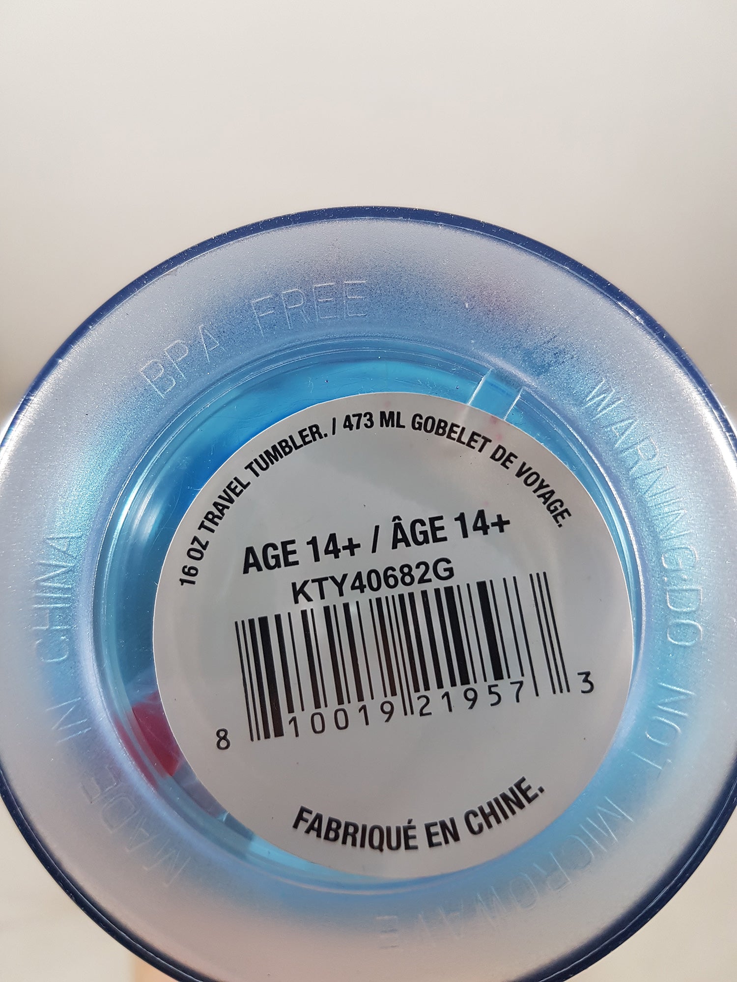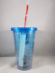 16 oz travel tumbler / 473 MIL, BPA FREE, Use for cold beverages only, Tumbler: Top rack only / Plastic ice cubes: Hand wash only