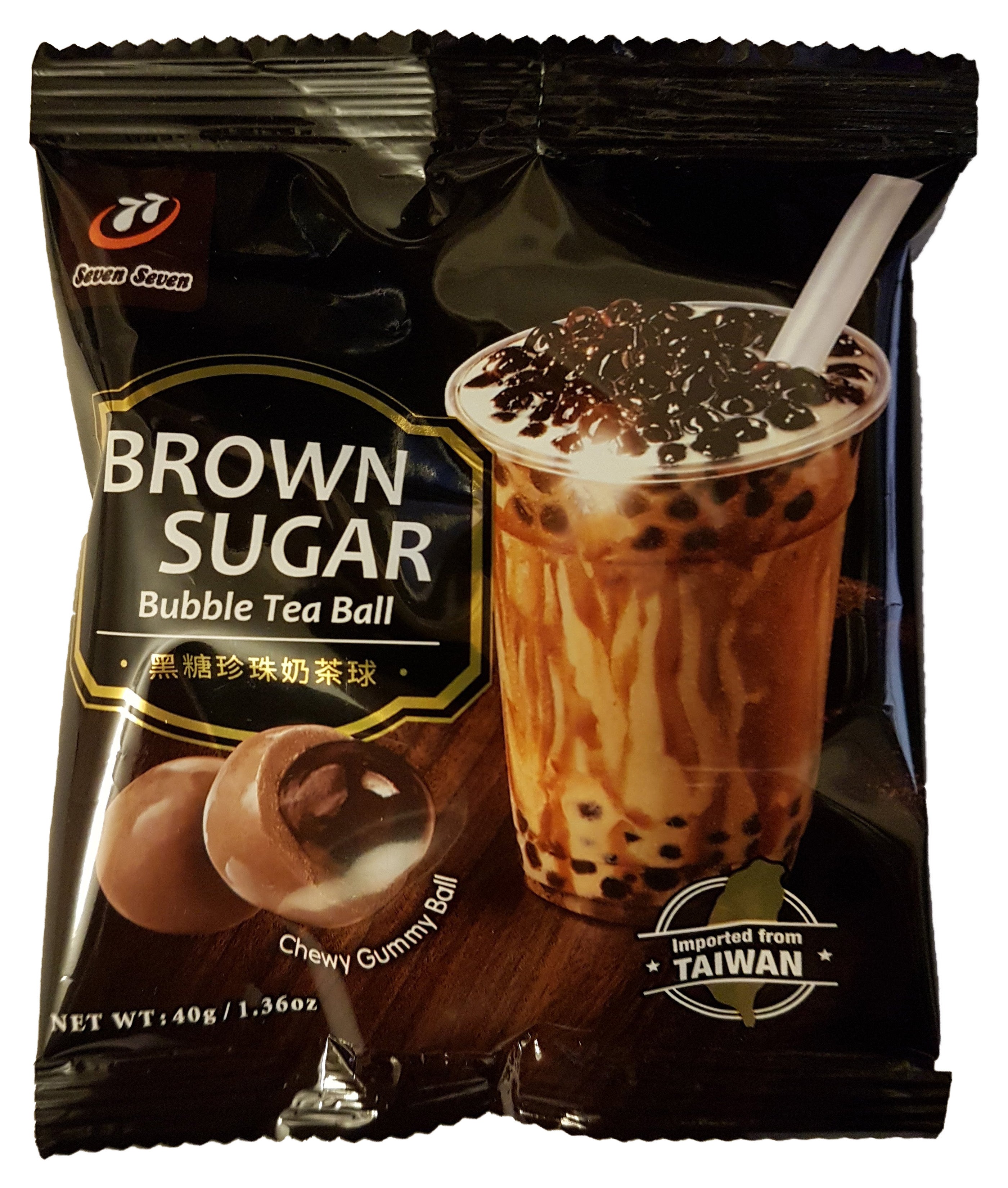 Seven Seven 77 Brown Sugar Bubble Milk Tea Balls. Individual bags with bubble milk tea balls.