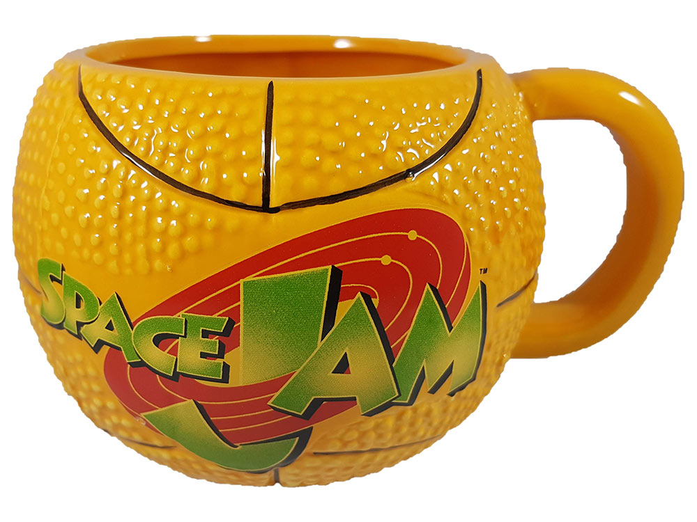 Space Jam Basketball Ceramic Mug 24 oz featuring the Space Jam Logo on textured basketball from the Warner Brothers movie series.