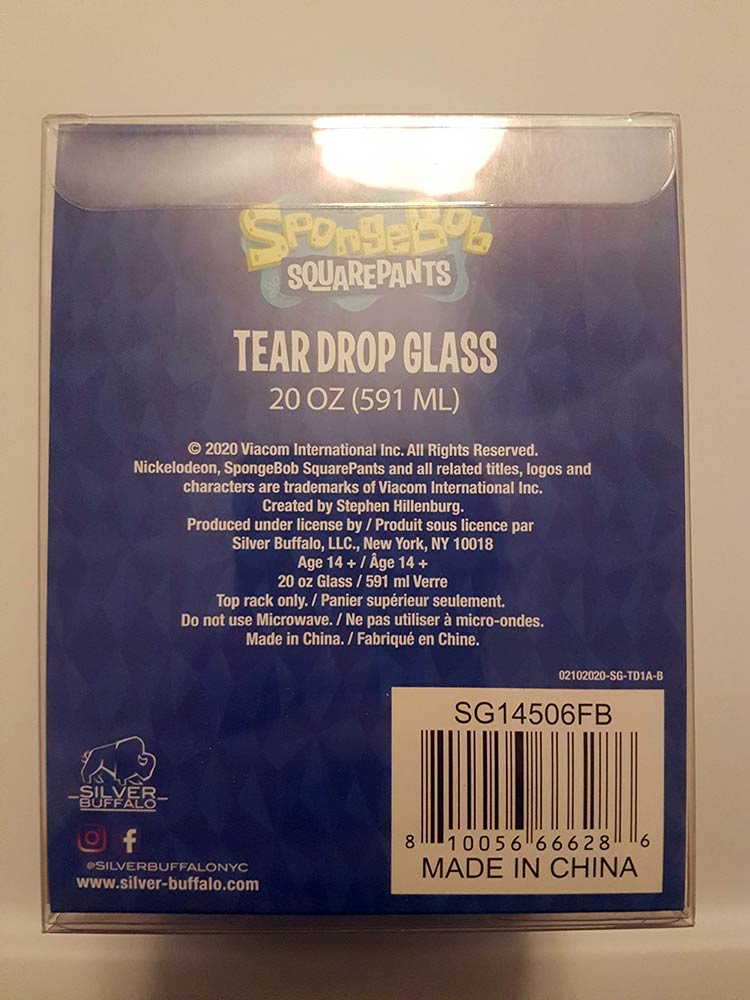 SpongeBob SquarePants Pinky Up! Tear Drop Wine Glass 20 oz. Featuring SpongeBob SquarePants from Nickelodeon's TV series.