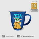 Enjoy a warm beverage with this premium ceramic mug featuring beloved Star Wars character Grogu! This 16oz mug has a cool blue exterior and a classic white interior. With its wide rim, it's perfect for sipping hot chocolate, coffee, or any other favorite drink.